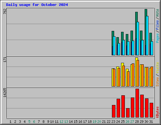 | Day | Hits | Files | Pages | Visits | Sites | KBytes | ||||||