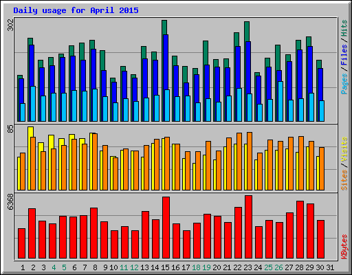 | Day | Hits | Files | Pages | Visits | Sites | KBytes | ||||||